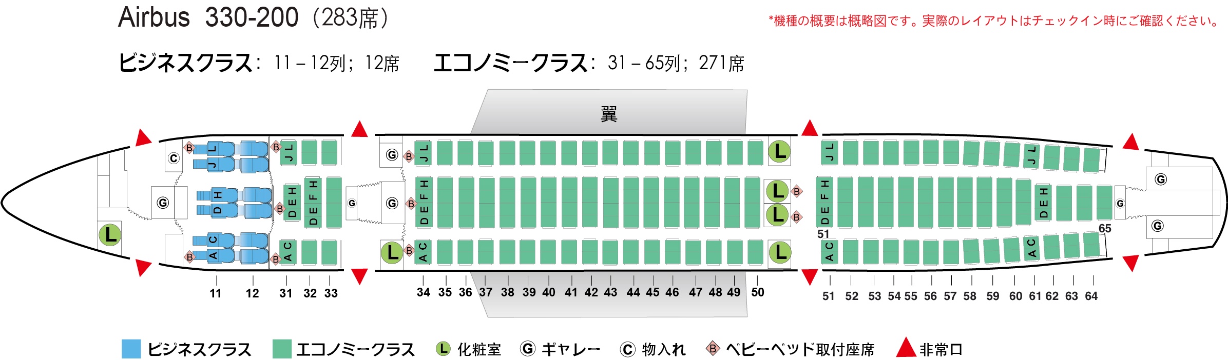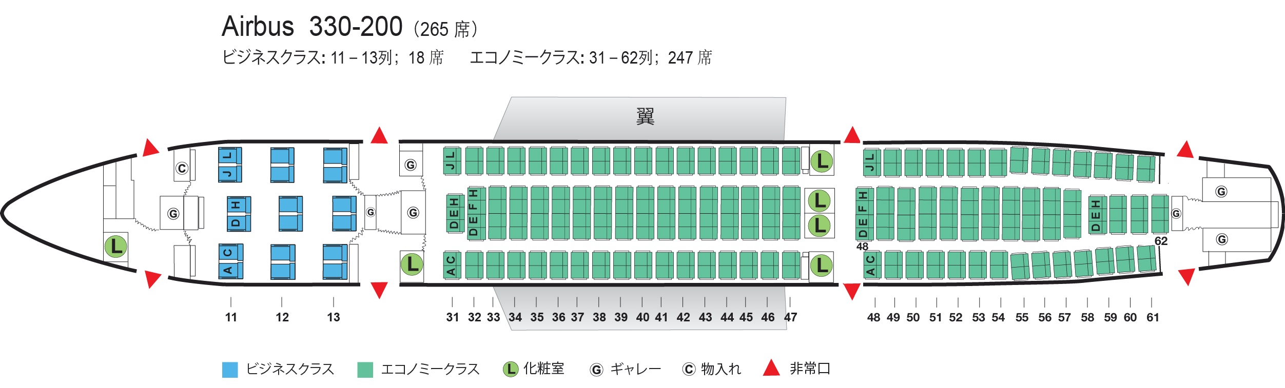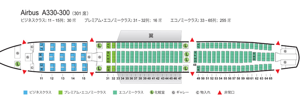 | 総座席数 | ビジネスクラス | エコノミークラス |