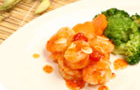 新鮮な海老を辛味ナッツソースで仕上げたピリ辛料理です。海老はタンパク質、脂質、ビタミンA、ビタミンB1、ビタミンB2、ニコチン酸、カルシウム、リン、鉄分を豊富に含みます。