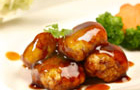新鮮な白身魚(パンガ)の魚肉だんごを豆板醤で炒めた料理です。魚の身は柔らかくコクがあり、ソースを絡めて香ばしく仕上げてあります。パンガはタンパク質、ミネラル、脂溶性ビタミンが豊富です。