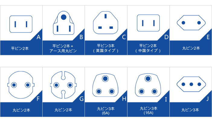 平ピン 2 本/平ピン 2 本 + アース用丸ピン